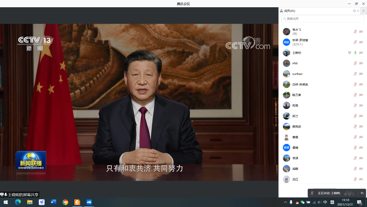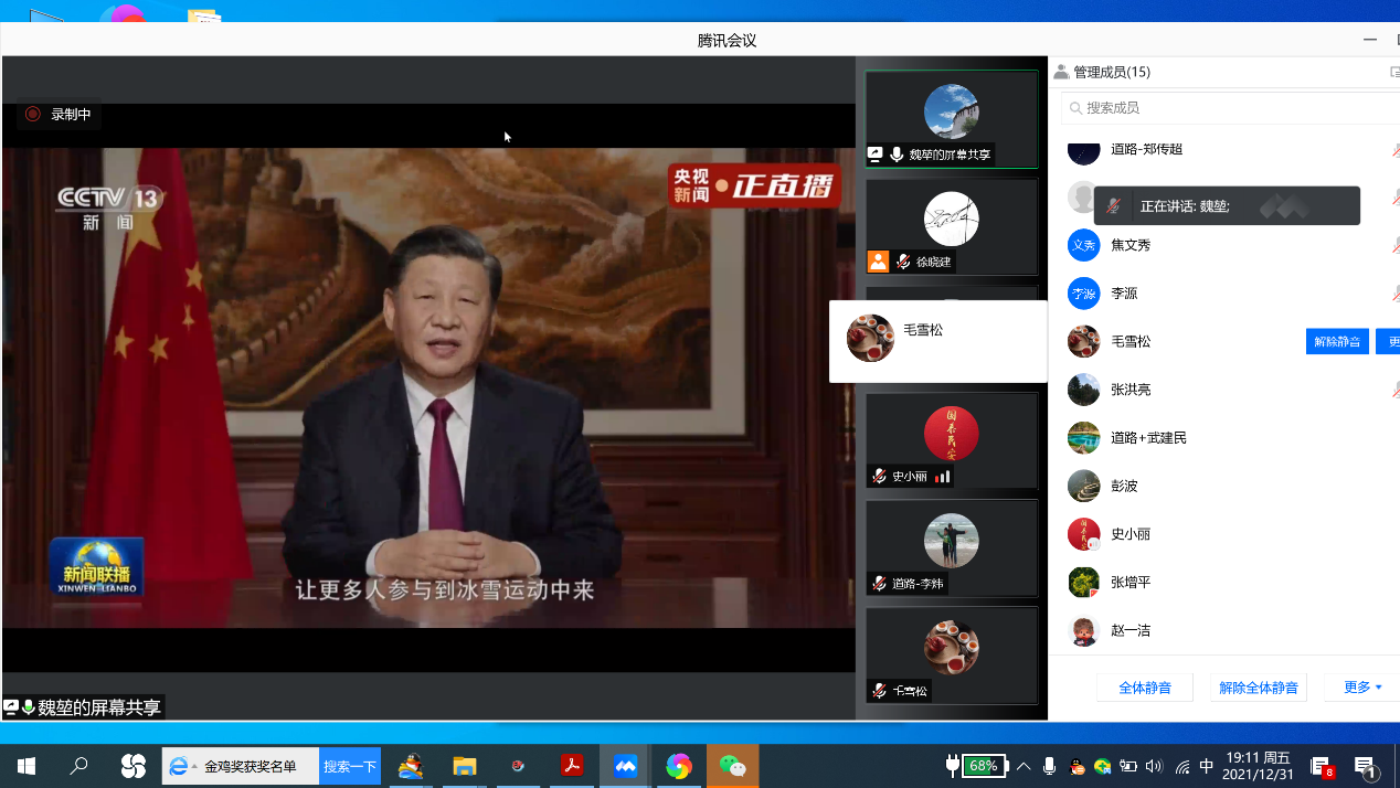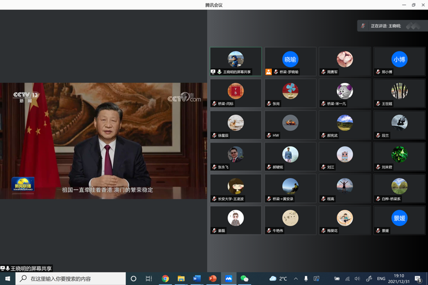 新年前夕,国家主席习近平发表了二〇二二年新年贺词。2021年12月31日19时,bw必威西汉姆联官方网站各党支部组织党员群众收看了国家主席习近平的新年贺词,感受过去一年伟大祖国的发展成就,坚定抗疫信心,共迎二〇二二。