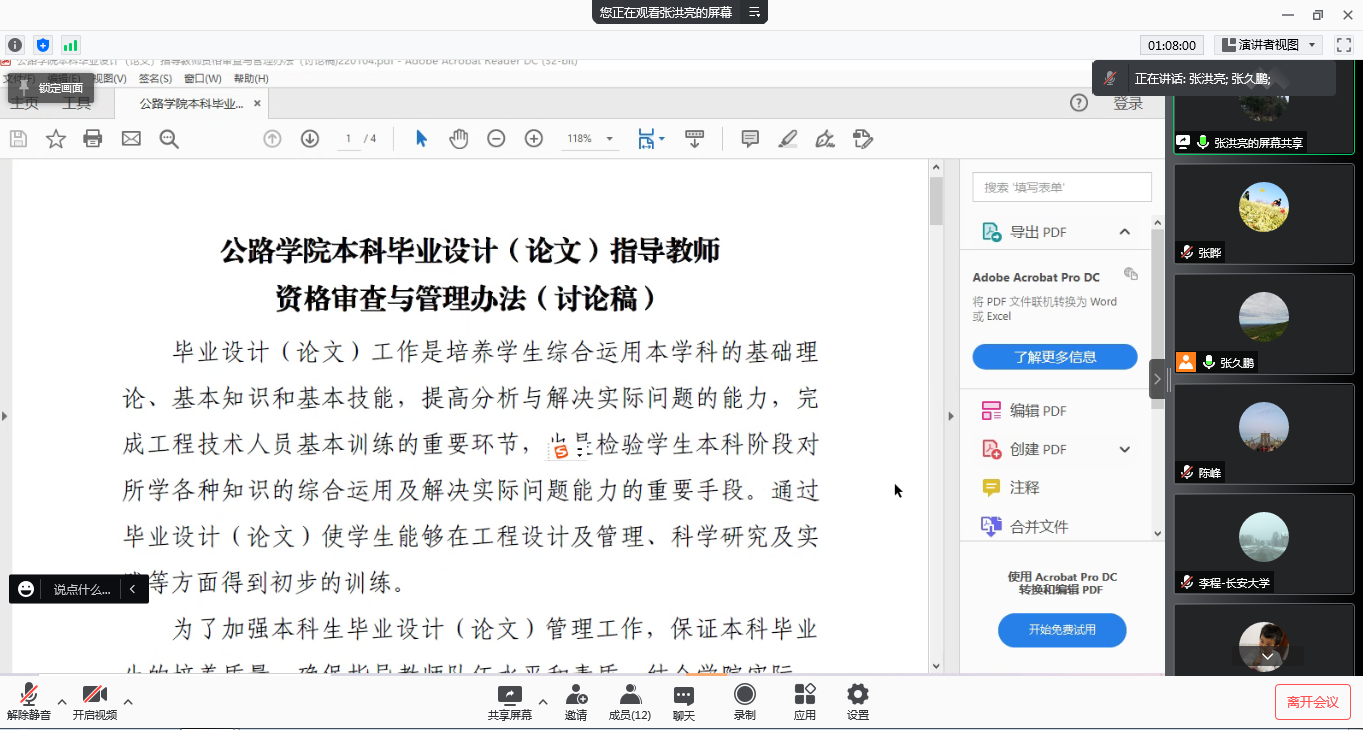 张洪亮教授汇报毕设指导教师管理办法编制情况