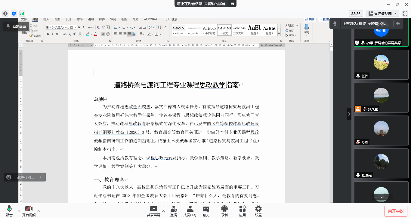 罗晓瑜副教授汇报课程思政教学指南编制情况