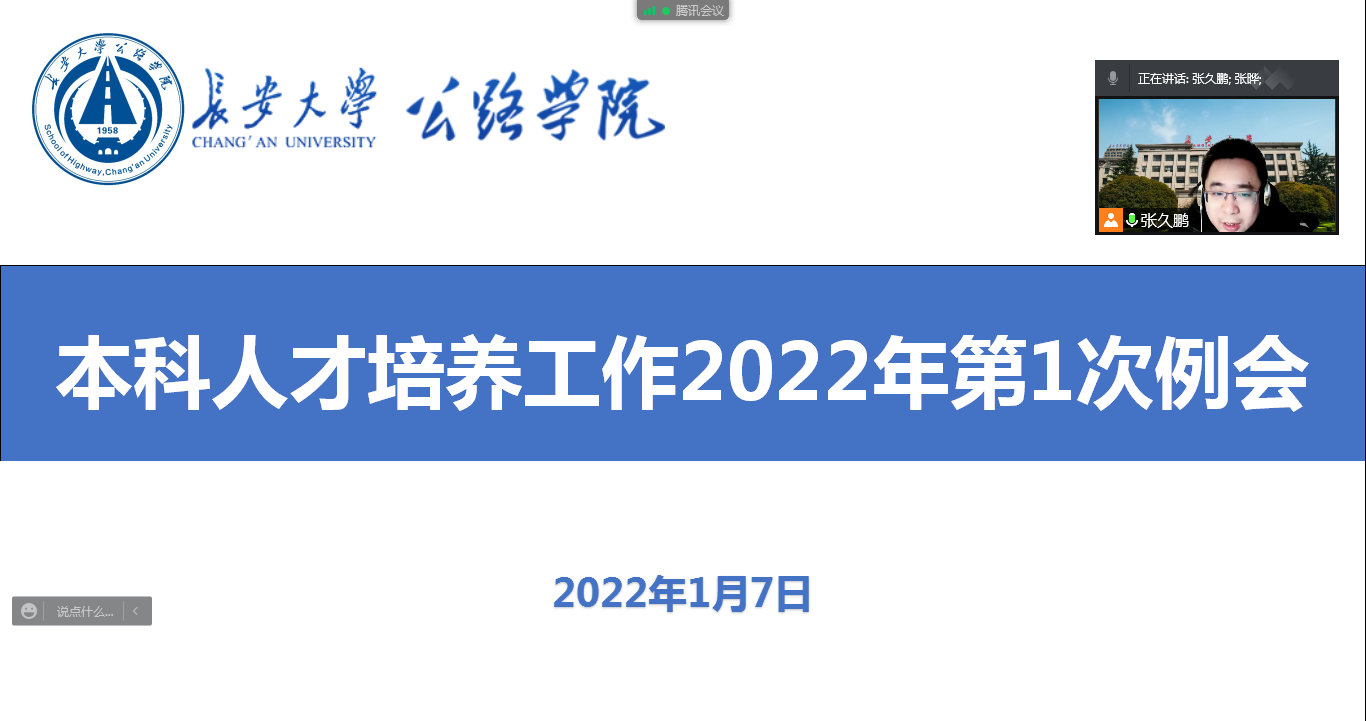 2022年1月7日下午,学院在线上召开本科人才培养工作2022年第1次例会。副院长张久鹏、各系(中心)本科教学主任、教学秘书及教务管理人员参加会议,会议由张久鹏主持。