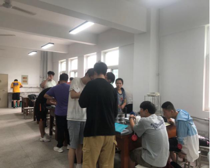 学生们一人一牌进行实验