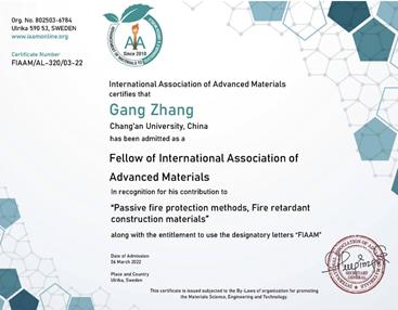 2022年4月6日,bw必威西汉姆联官方网站张岗教授当选国际先进材料协会(International Association of Advanced Materials,IAAM)会士(FIAAM),以表彰其在“桥梁结构智能防火新方法与新材料”领域做出的突出贡献。张岗教授应邀做了“IAAM Fellow Lecture 2022”的会士报告,着重介绍了研究团队在智能纤维混凝土的熔热阻爆机制和高性能组合结构桥梁抗火与防护新技术方面的系统工作。