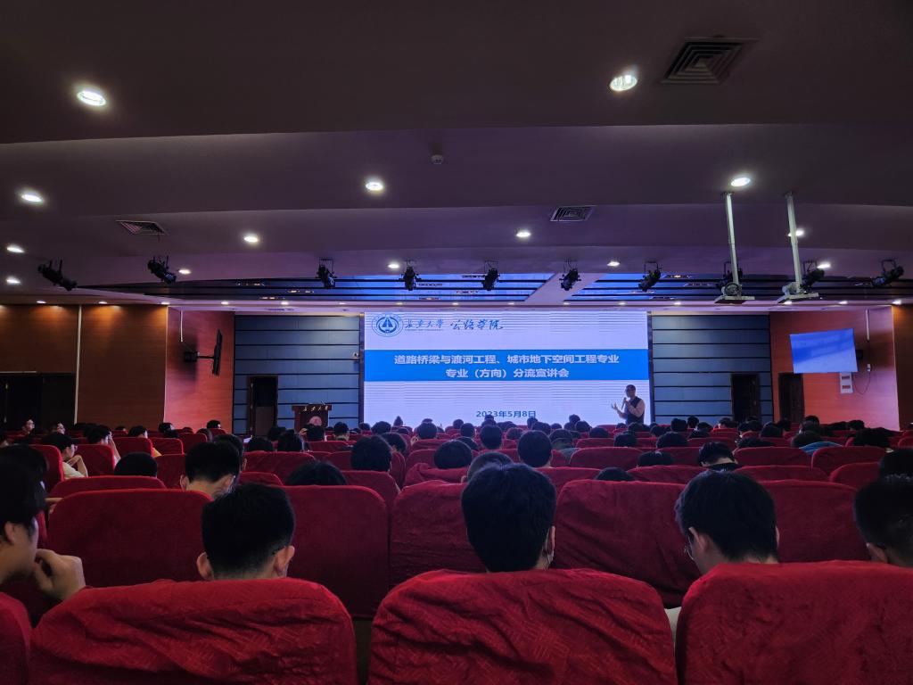 2023年5月8日晚7:00,在北辰会议中心学术报告厅,bw必威西汉姆联官网顺利召开2021级道路桥梁与渡河工程、城市地下空间工程专业分流宣讲会议,隧道工程系主任罗彦斌、道路工程系副主任张洪亮、桥梁工程系副主任陈峰、机场工程系主任栗培龙、岩土工程系副主任张宏光、城市轨道工程系副主任张景峰、教学秘书张晔、学生辅导员及教务管理人员参加了此次宣讲,会议由张晔主持。
