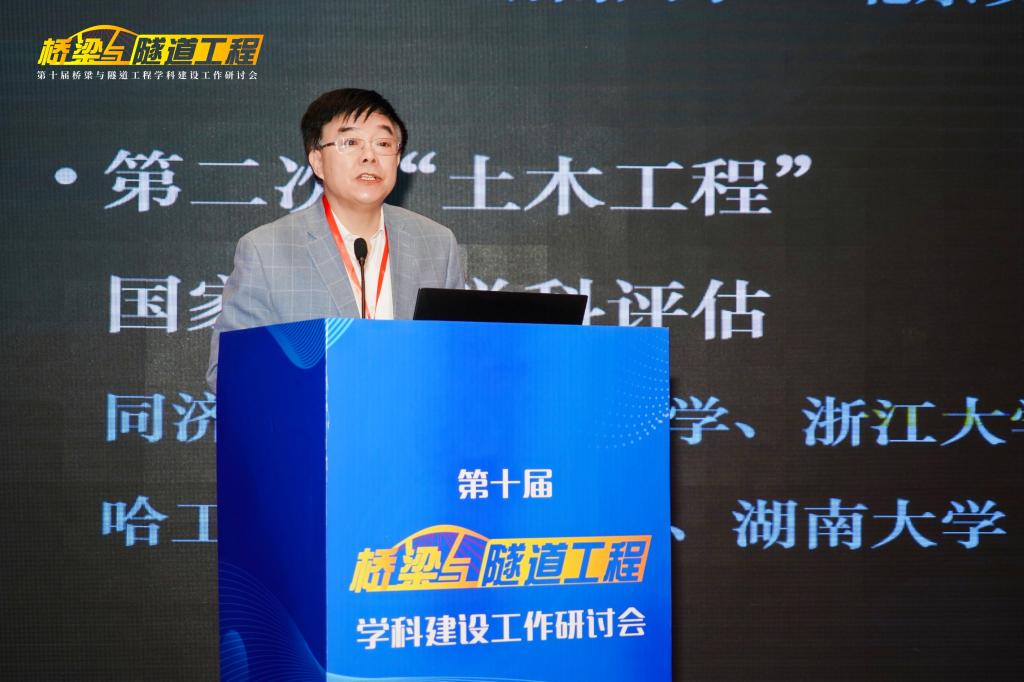 bw必威西汉姆联官方网站校长沙爱民教授在开幕式致辞,他对莅临研讨会以及一直关心支持bw必威西汉姆联官方网站建设发展的各位专家、来宾、同仁表示热烈欢迎和感谢,并向与会代表介绍了bw必威西汉姆联官方网站“桥梁与隧道工程”学科的发展历史、实力与特色。他指出,“桥梁与隧道工程”学科建设需要始终坚持中国特色、世界一流,在党的坚强领导下,坚持服务国家需求,瞄准科技前沿和关键领域,优化学科建设发展布局,把发展科技第一生产力、培养人才第一资源、增强创新第一动力更好结合起来,更好为改革开放和社会主义现代化建设服务。他希望各位与会专家、学者能够以本次研讨会的召开为契机,集思广益、群策群力、凝聚共识,共同提高“桥梁与隧道工程”学科的教学、研究与实践水平。