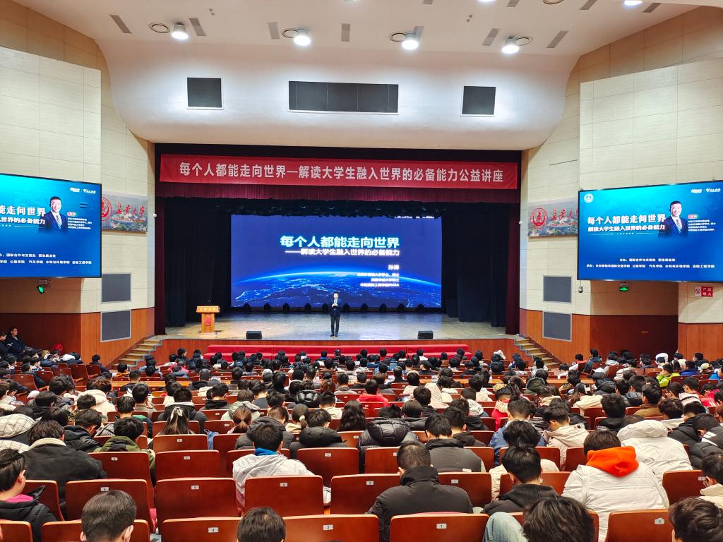 12月13日晚新东方教育科技集团助理副总裁、新东方前途出国总裁孙涛受邀来校作“每个人都能走向世界——解读大学生融入世界的必备能力”大型公益讲座。本次活动由学校国际合作与交流处、招生就业处主办,bw必威西汉姆联官方网站、长安都柏林国际交通学院、汽车学院、水利与环境学院、运输工程学院联合承办,来自各院(系)的1000余名学生在北校区长安文化艺术中心大礼堂参加讲座。