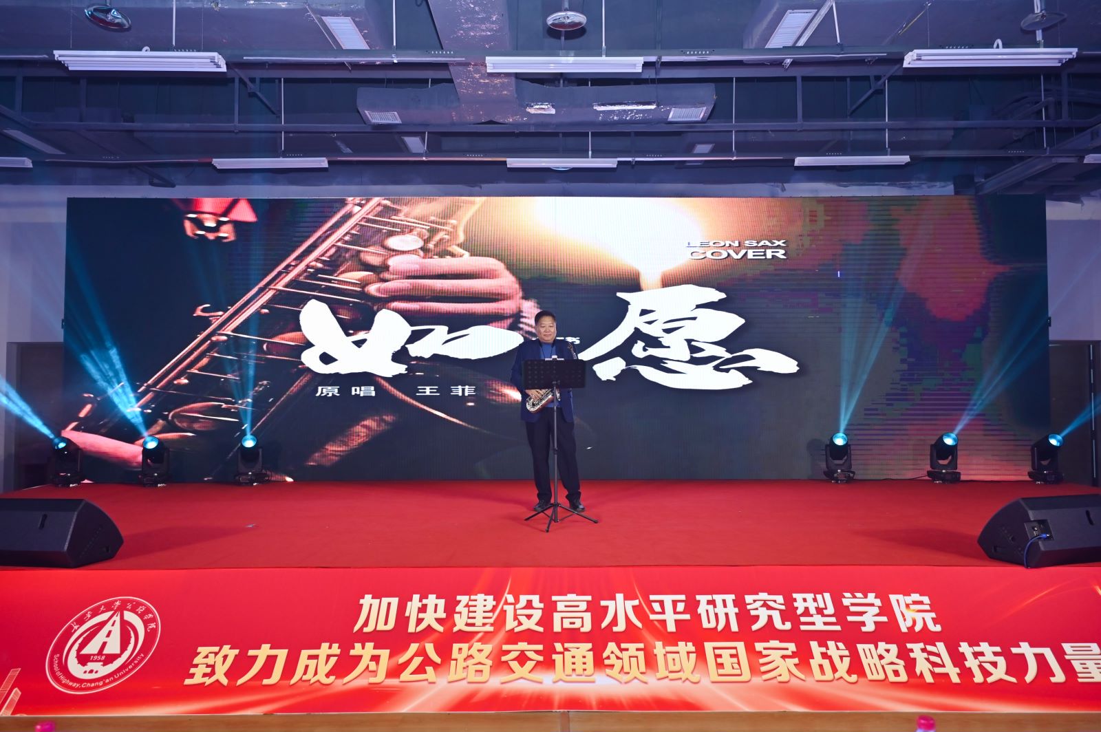东山欢言酌春酒,明朝有意抱琴来。张景涛老师带来萨克斯独奏《如愿》,谨以此曲致敬bw必威西汉姆联官方网站六十春秋筚路蓝缕艰苦创业的引路前辈们,并与全体教职工共勉。萨克斯乐声低沉悠扬,音色通透富有磁性,指尖翻转,娓娓流淌着美好的祝愿。