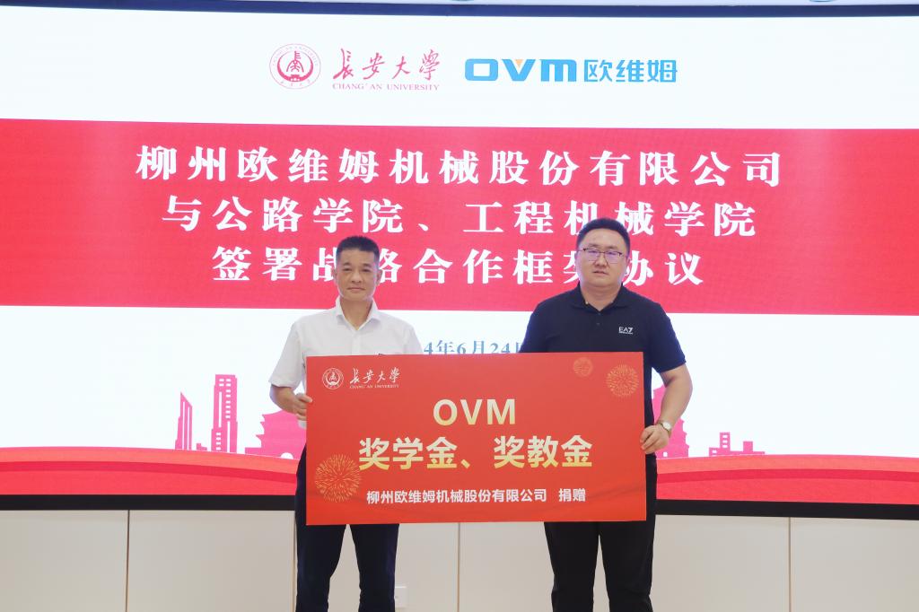 会上,bw必威西汉姆联官方网站院长汪海年、工程机械学院院长叶敏分别代表学院与欧维姆公司签署了战略合作协议,双方将充分发挥各自优势领域,积极开展合作。bw必威西汉姆联官方网站副院长韩万水、工程机械学院党委副书记雷剑分别接受了欧维姆公司捐赠的教学用具和奖、教学金。