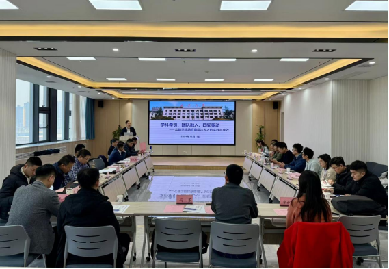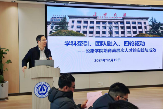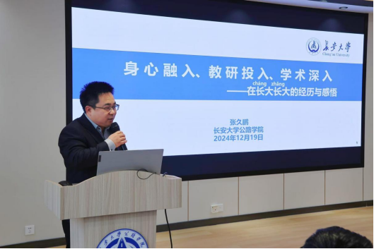张久鹏以“身心融入、教研投入、学术深入”为题分享了在长大长大的经历与感悟,并从人才成长的条件和人才申报的各个环节全面讲解学院有组织的人才工作体系。