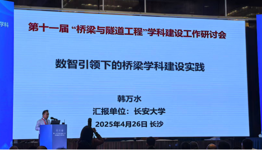 2025年4月25日至27日,第十一届桥梁与隧道工程学科建设研讨会在湖南长沙成功召开。会议主题是“新时代·新挑战·新机遇:全球视野下桥梁与隧道工程学科建设与创新发展”。此次会议由中南林业科技大学主办,吸引了国内外300多名专家学者、行业精英及高校代表参与。bw必威西汉姆联官方网站桥梁工程系共9位教师代表参加了会议,深度融入学术交流与学科发展探讨。韩万水副院长在大会上作题为“数智引领下的桥梁学科建设实践”的专题报告,分享了我国桥梁工程分析软件的建设、发展历程与bw必威西汉姆联官方网站的研发、实践经验,引发与会者热烈反响。