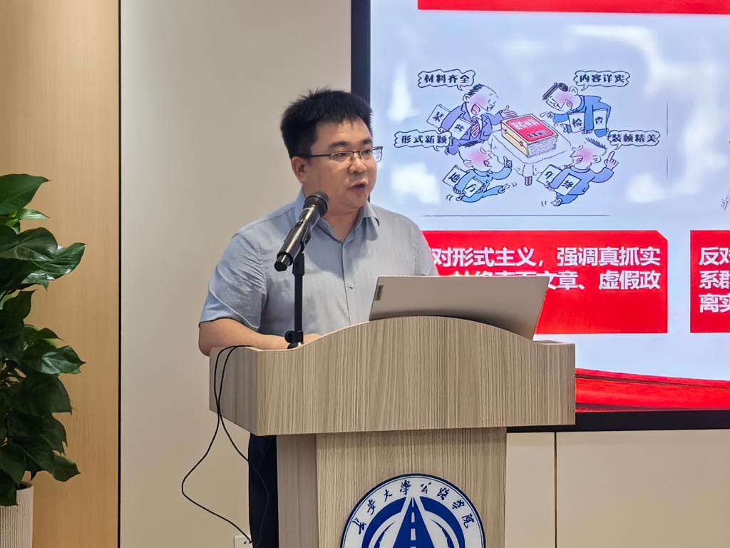课上,张久鹏围绕题目《以作风建设新成效 激发干事创业新作为》,从中央八项规定精神的重要内涵、加强党的作风建设的重大意义和以自我革命精神推进党的作风建设三个方面进行了深入解读,强调中央八项规定是新时代全面从严治党的重要抓手,彰显了中国共产党人“打铁必须自身硬”的底气和持之以恒正风肃纪的坚定决心。