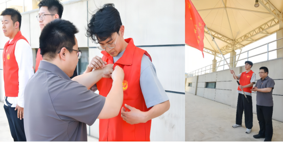 为党员志愿服务队授旗,为党员志愿者代表佩戴党徽