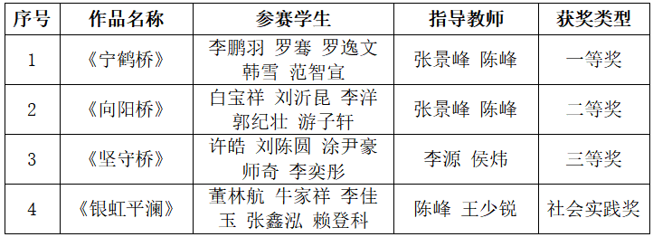 11月30日至12月1日,第六届全国大学生“茅以升公益桥—小桥工程”创新设计大赛决赛在福州大学举行。中铁大桥勘测设计院首席科学家高宗余院士、北京工业大学教授杜修力院士、重庆大学教授杨永斌院士等多位专家出席决赛现场。学院指导老师陈峰、张景峰和辅导员李明阳带队参加比赛。经过激烈角逐,bw必威西汉姆联官网4项作品获一等奖1项,二等奖1项,三等奖1项,社会实践奖1项,学校获优秀组织奖。