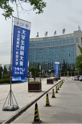 学院实验教学与双创教育中心联合教务办公室、学生工作办公室成立专项工作组,全程负责赛事统筹。在中交路建公司冠名支持下,赛场首次布置赛事主题展板、悬挂道旗,营造出浓厚的双创氛围。参赛项目覆盖交通新材料、智慧养护、绿色基建等前沿领域,申报数量较上届增长37%。