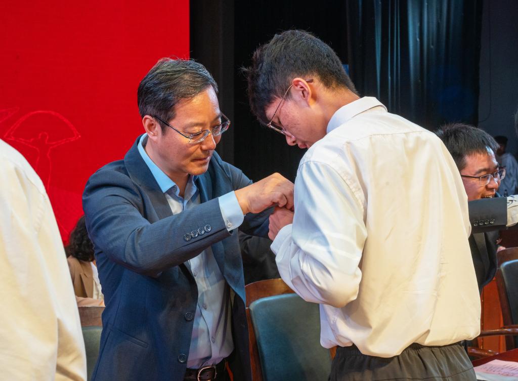 学院班子成员为新生代表佩戴院徽