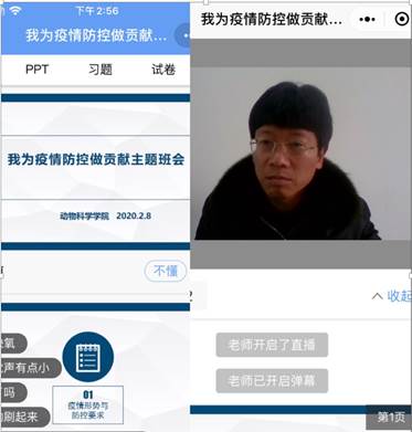 为深入贯彻落实习近平总书记关于打赢疫情防控阻击战重要指示精神,根据学校教务处、学工部“停课不停学 学习不延期”的总体要求,万象城官网于2月8日通过“雨课堂”直播的方式面向全院800余名本科生及班主任、辅导员召开了“我为疫情防控做贡献”主题班会。班会内容分为“疫情形势与防控要求”、“疫情相关知识介绍”以及“我为疫情防控能做些什么”三个部分,由动物医学专业教师李鹏副教授主讲,各年级同学通过弹幕、在线测试等方式与主讲教师进行互动。