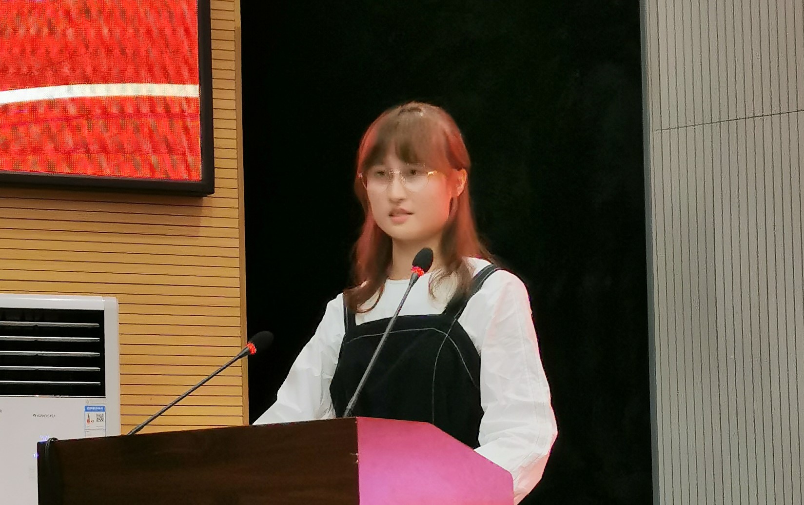 动物医学31902班王珏代表全体本科生新生发言。她说,大学是人生的新阶段,正是奋斗的新起点,大学生活需要确立目标,懂得坚持,不断实践。