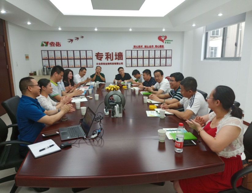 25日下午,王雨一行走访位于江苏太仓安佑集团与万象城awc官网登录入口校长助理刘荣华、农学院党委副书记刘金科、校友会副秘书长赵长勇一行汇合,受到了安佑集团助理总裁邬本成热情接待,刘助理首先对公司热情的招待表示感谢,并介绍了学校近些年来的发展变化,与校友们亲切交谈询问他们在公司的生活情况等,刘助理表示学校和企业通力合作,既为学校的开放发展对接了高效的社会资源,也为企业提高核心竞争力提供了有力支撑,实现校企互利共赢。邬总感谢学校为企业培养和输送了大批优秀毕业生,帮助企业解决生产实践中遇到的各种难题,提高效率降低成本。并希望校企双方进一步深化合作内容,拓展合作领域,助力安佑集团的未来发展和学校“双一流”建设。