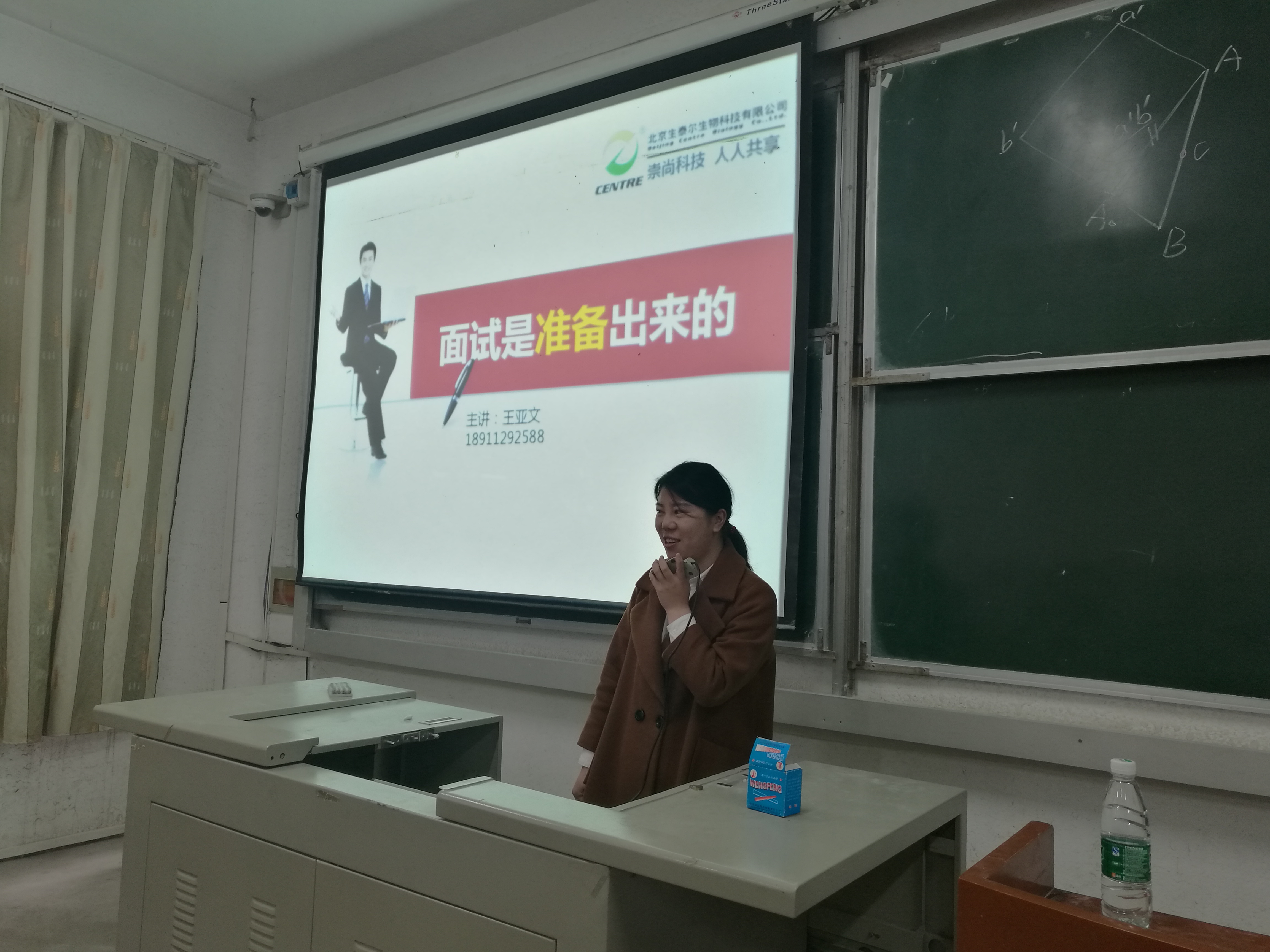 (通讯员蔡懿慧)3月11日,北京生泰尔生物科技股份有限公司的人力资源经理王亚文在6教102讲关于“面试是准备出来的”的就业指导课,万象城官网大三全体学生分批次听取本次课程。此次讲课的内容主要针对“如何写出一份令人眼前一亮的简历”和“面试时的注意事项”两个方面,旨在使万象城官网大三学生提前了解和准备面试,为以后的学习及就业做好准备。