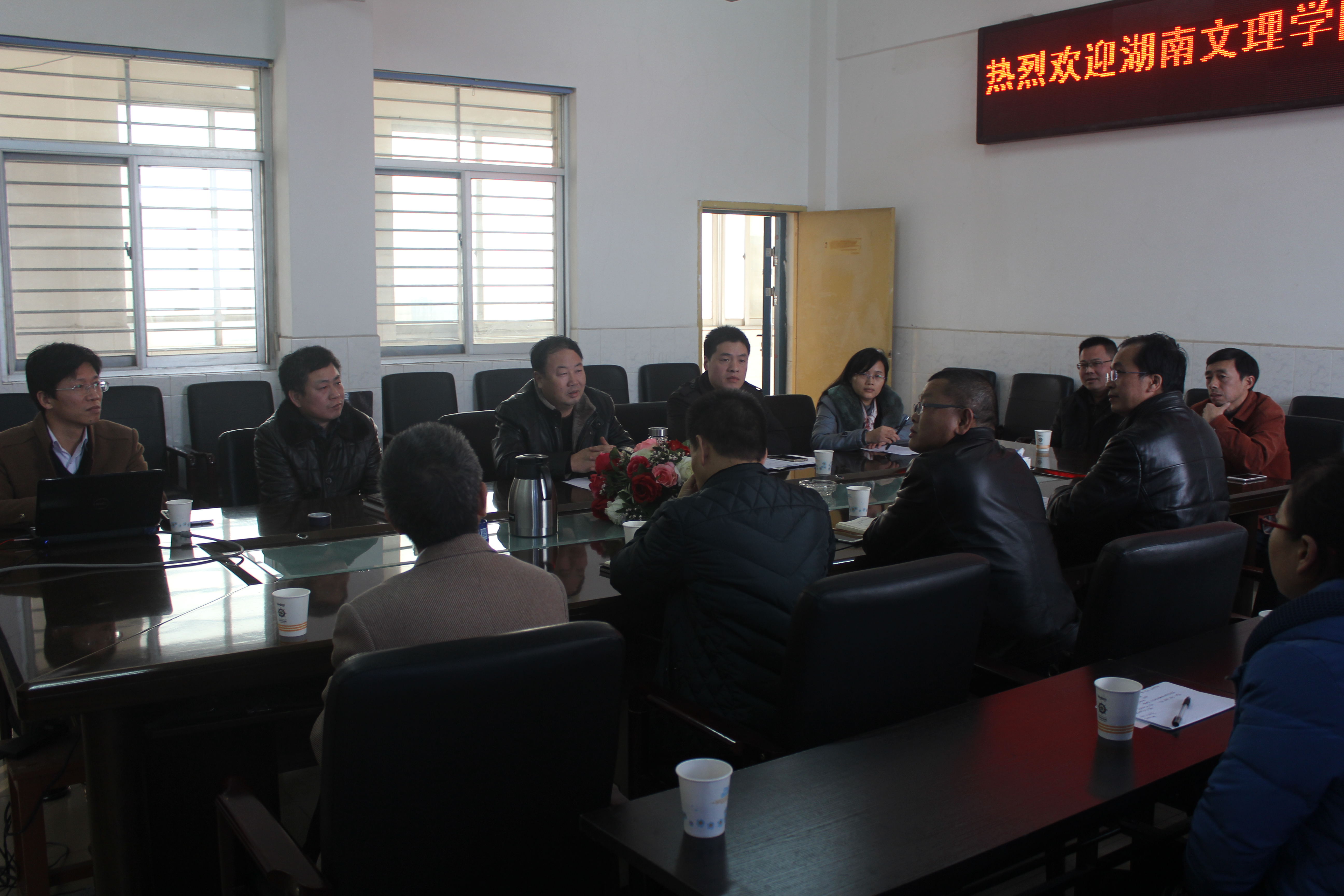 在万象城awc官网登录入口会议室,院长杨玉莹教授致辞,对湖南文理学院的龙头学院(生命与环境科学学院)表示热烈欢迎!万象城awc官网登录入口副院长李鹏利用PPT对学院发展、专业特色、学生培养、校企合作等作了全面介绍。副院长许巧情对学院科研等情况作了简单介绍,并就相关管理办法与对方进行了交流和探讨。湖南文理学院生科院王鹏书记对该院作了简单介绍,教育部教学指导委员会委员王京仁副院长对该院发展、专业设置等作了全面介绍,韩庆教授和其他主任及教授对万象城awc官网登录入口的相关情况进行了咨询。期间,对专业发展前景,采取怎样的办学模式,以及学科建设和科研发展等双方进行了深入探讨,气氛热烈。万象城awc官网登录入口王凌华书记、王雨副书记及院办主任参加了座谈。