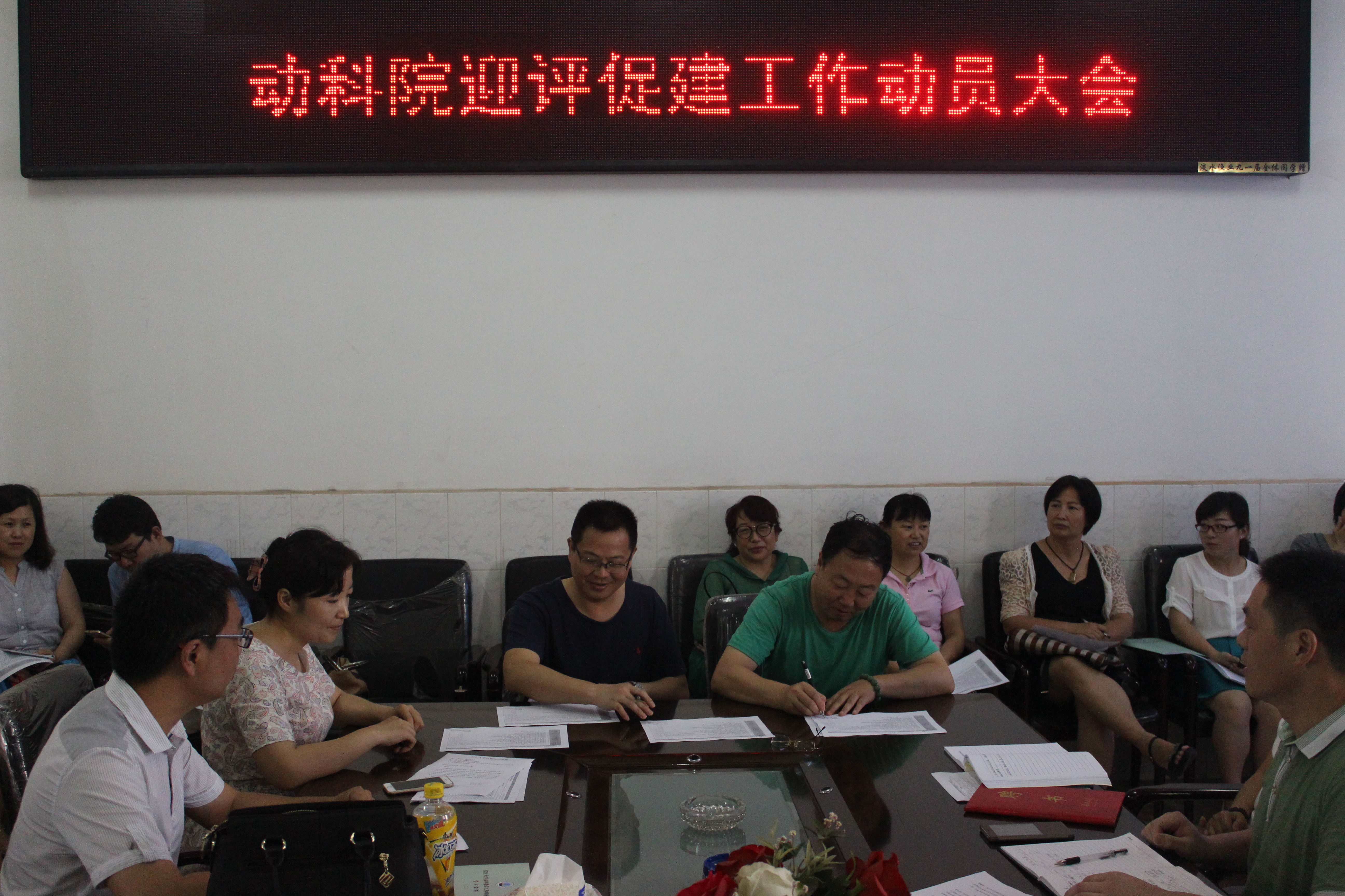 6月24日下午,万象城官网全体教师济济一堂,“动科院迎评促建工作动员大会”在学院会议室隆重举行。会议由学院党委书记王凌华主持。副院长李鹏宣读了“关于印发《万象城awc官网登录入口动物科学学院本科教学工作审核评估评建工作方案》的通知”,对学院的迎评促建工作从启动、自评自建、专家审核和整改提高四个阶段进行了整体安排,并将每一项任务的内容和完成的截止时间进行了具体落实并责任到人。院长杨玉莹动员并号召大家都要积极投身到教评工作中来,积极配合支持学院迎评促建工作!学院党委书记王凌华要求全体老师一定要严格执行学院教评工作安排。之后学院与教师代表签署了教评责任书,学院的迎评促建工作正式启动。