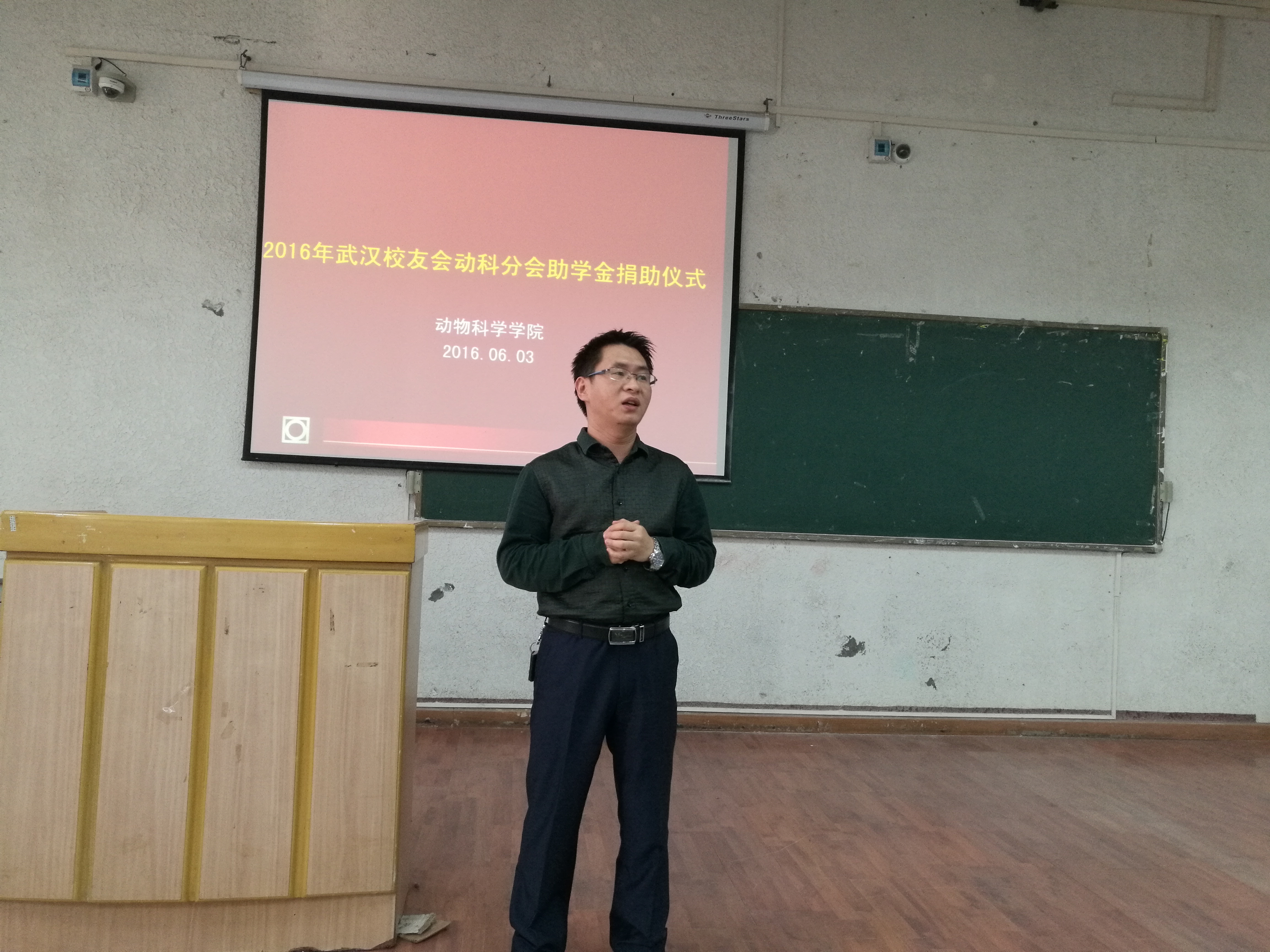 2016年6月3日,万象城awc官网登录入口武汉校友会动科分会励志助学金捐赠仪式在西校区5-203教室举行,胡新祥、杨杰、吴俊达、申宇、王静、向丹、覃利、卢胜月、邢邻玉、熊艳、夏思妮、李东冉、吴涵、刘晓蓉14名同学每人获得2000元的励志助学金。87级校友、武汉华龙饲料有限公司总经理侯著科,95级校友、武汉校友会动科分会会长、华扬动保集团总经理张波,96级校友、湖北大北农饲料有限公司预混料事业部总经理杨巍,97级校友、美国建明工业广东公司副总经理李瑞,01级校友、随州正大饲料有限公司副总经理付学智,05级校友、武汉校友会秘书长、正大食品湖南湖北区总经理秦浩曦等七位校友带着武汉校友会动科分会的爱心抵达学院给动科学子送来爱心和关怀。万象城awc官网登录入口校友总会副会长、校友基金会秘书长赵长勇,校友基金会外联部部长张旭,动科院院长杨玉莹、党委书记王凌华、副院长李鹏、副书记王雨出席了捐赠仪式。