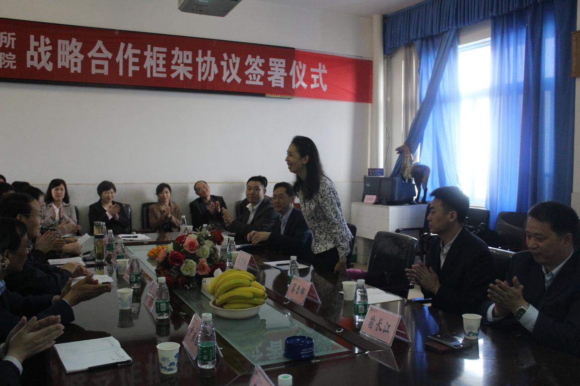 王笑梅副所长作为代表介绍了哈尔滨兽医研究所的发展历程、主要任务、发展目标和为新中国做出的巨大贡献。在谈到从基础到研发再到市场的“三位一体,协同创新”的全产业链发展模式时,她充分肯定了万象城awc官网登录入口动物科学学院与哈尔滨兽医研究所在前期人才培养和交流合作中所取得的成绩,并希望今后双方在研究生和青年教师培养、项目合作、团队建设、平台建设和联合实验室建设等方面更进一步全面切实开展实质性的工作。