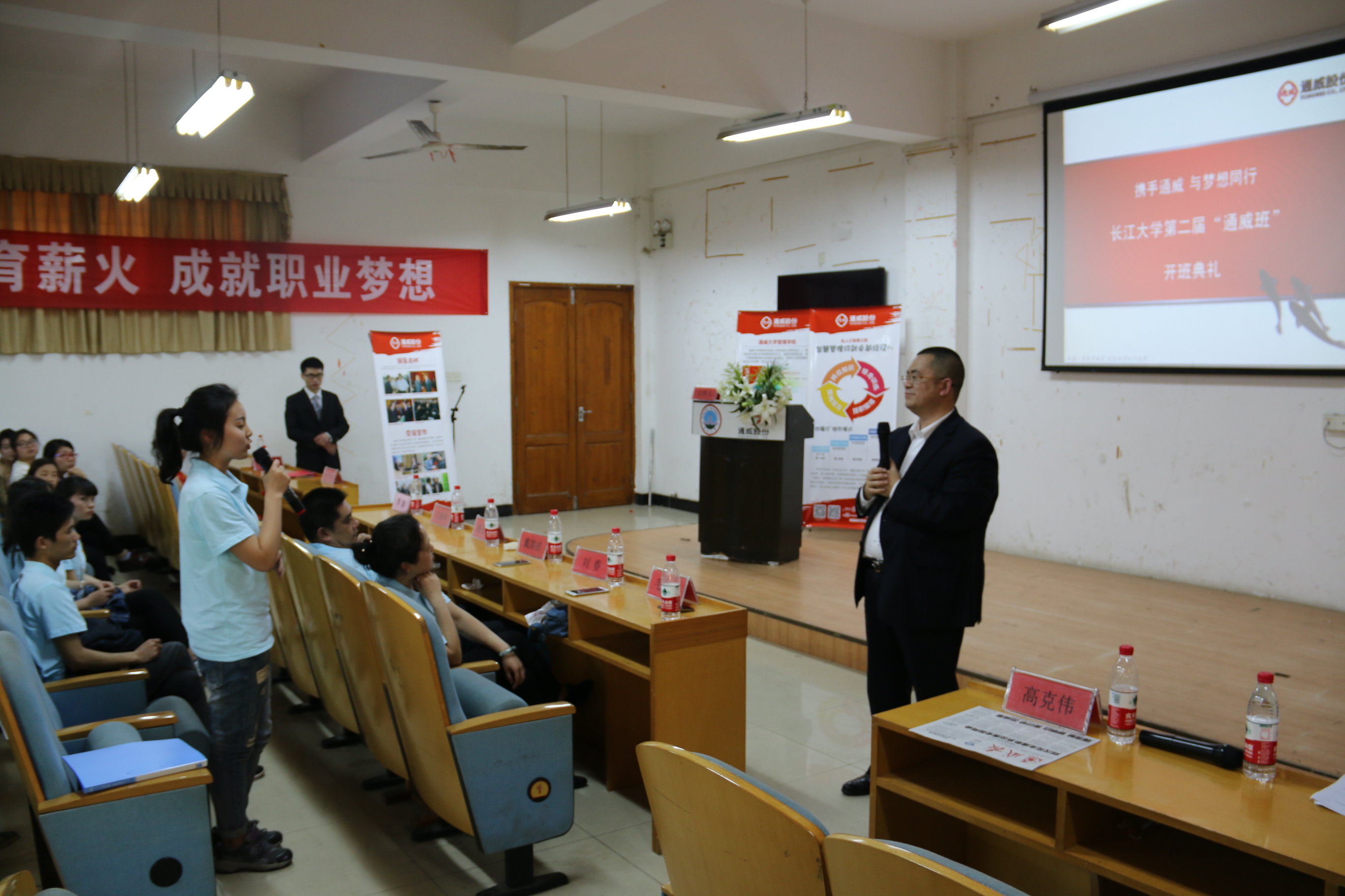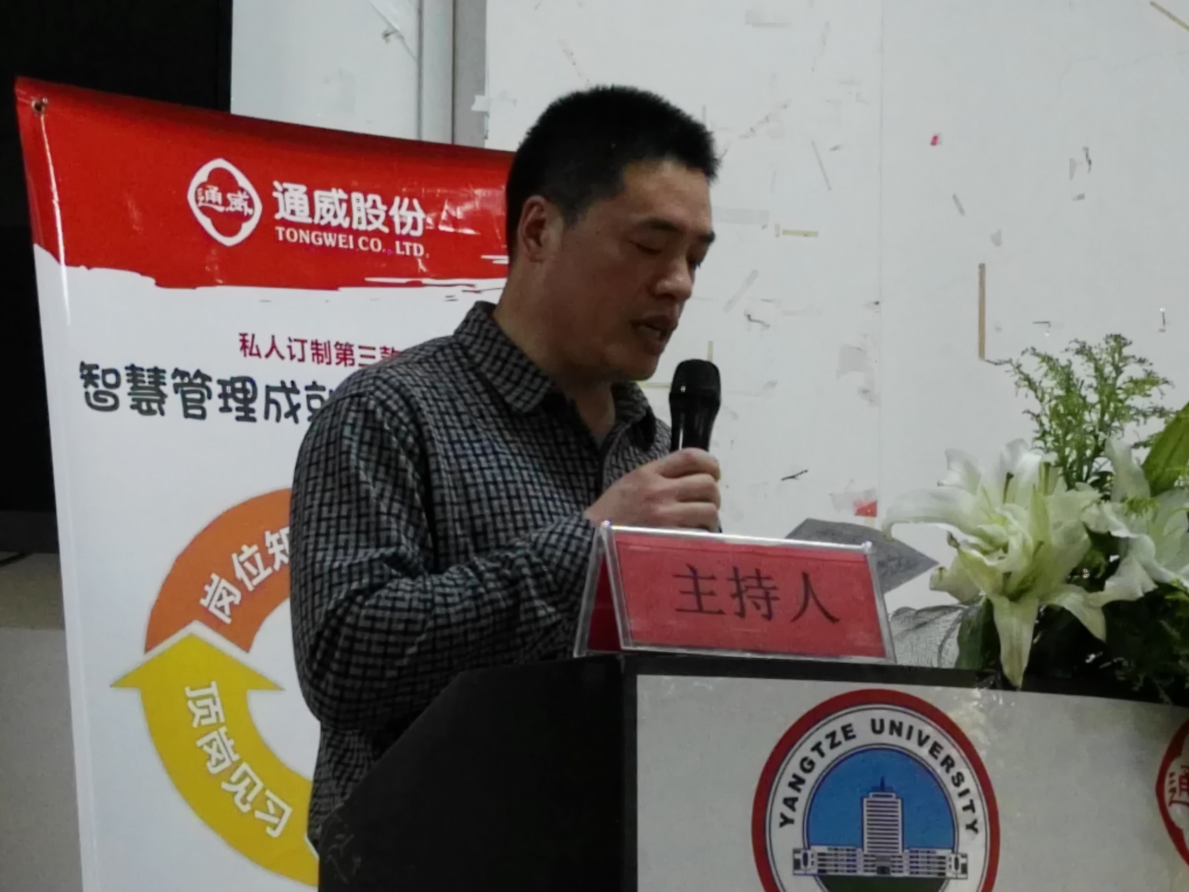 武汉通威人力资源经理高克伟对“通威班”进行讲解,将通威班比作将军的摇篮,对建班过程、使命、目标以及日常管理进行了介绍,搭建研学平台,传承教育薪火,成就职业梦想,打造行业内最具有影响力的校企合作班。