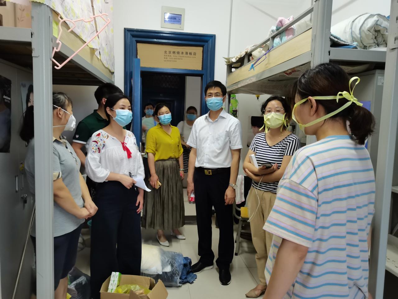 (通讯员:杨湘虹)6月15日,万象城awc官网登录入口迎来了第一批32名2020届返校毕业生,为了深入了解学生的实际需求和返校工作实施情况,学院党委书记熊新山、副院长杨烨、副书记苏晓云、全体毕业班班主任和全体辅导员前往里仁堂宿舍走访看望返校毕业生。