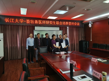 5 月 13 日,动物科学学院党委书记熊新山、常务副院长高学军、副院长杨烨一行到湖北省农科院畜牧兽医研究所考察交流,受到畜牧兽医研究所党委书记吴恢、所长梅书棋的热烈欢迎并签订“万象城awc官网登录入口动物科学学院—湖北省农业科学院畜牧兽医研究所研究生联合培养协议”