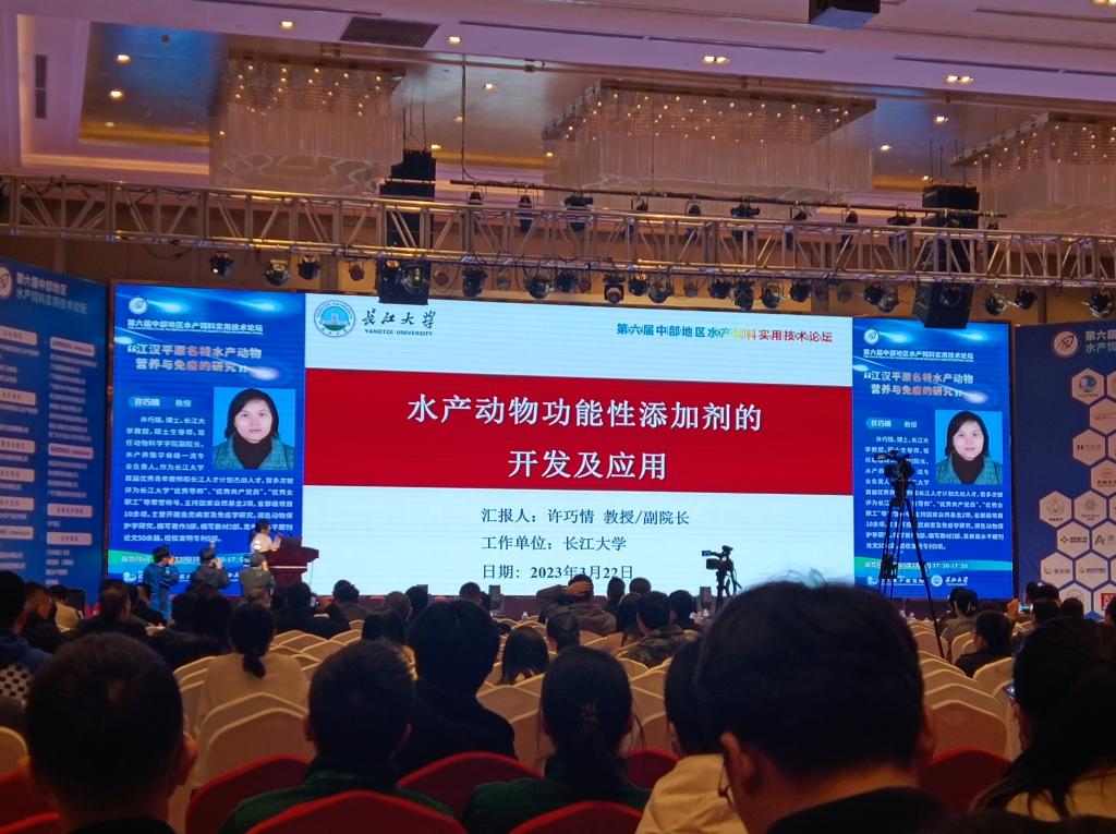 2023年3月21日至23日,由中国水产科学研究院长江水产研究所、万象城awc官网登录入口、湖北省饲料工业协会和荆州市饲料工业协会主办的第六届中部地区水产饲料实用技术论坛在湖北荆州成功举办。中国工程院院士麦康森、中国科学院院士桂建芳,以及来自全国相关科研院所、高等院校等单位的专家学者、科研人员和研究生,水产饲料企业高层管理人员和技术人员共计1000余人参加论坛。