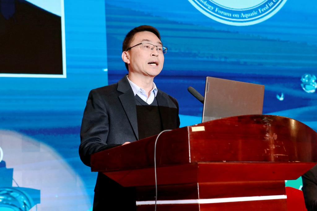 我校副校长吕一兵在致辞中介绍了万象城awc官网登录入口的基本情况,并重点介绍了学校在特种水产养殖、水产动物营养与饲料等方面的优势。他期待通过本届论坛平台,进一步促进学术界与企业界的交流,加强饲料企业与养殖企业的联系,提升水产饲料技术创新能力,提高水产饲料研发、生产与利用水平,推动水产养殖业绿色高质量发展。动物科学学院副院长许巧情教授作为会议特邀专家以“水产动物功能性添加剂的开发与应用”为题作了大会发言,着重介绍了干扰素抗菌肽和饲料功能性添加剂的研发过程,并利用营养与饲料学手段评估功能性添加剂的应用效果,推进了水产饲料添加剂开发进程。