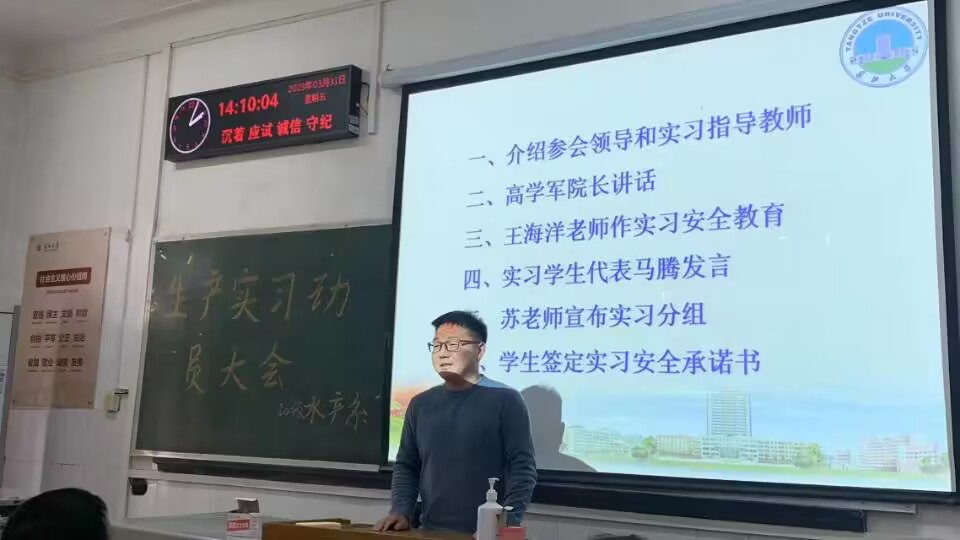 学工辅导员王海洋老师就实习期间的安全管理作了要求。要求学生实习期间防火、防盗、防水;不做传销、不做网贷、不过量饮酒。要求同学们出行注意人身和财产安全,生产实习期间严格遵守实习单位操作规程。