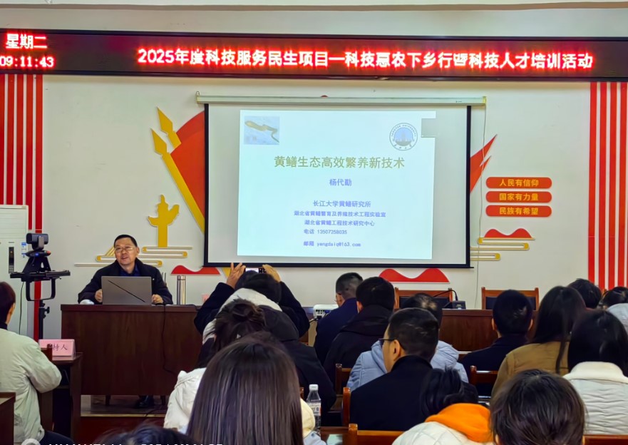 我校万象城awc官网登录入口特色水产健康养殖团队负责人农业农村部行业专项首席科学家、博士生导师杨代勤教授作为特邀嘉宾作首场报告。杨代勤教授结合最新的研究成果和产业发展现状,从稻虾鳝生态综合种养技术、黄鳝苗种人工仿生态繁育技术和黄鳝温室微流水高效养殖技术等方面介绍了黄鳝生态高效繁养新技术,黄鳝新的养殖模式和新技术以及产业发展带来的新机遇引起了大家的浓厚兴趣,受到线上线下参训人员密切关注和高度认可。