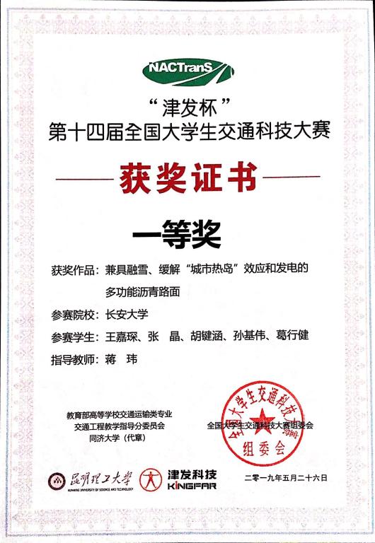 The students of the School of Highway won the first prize of the 14th National College Students Transportation Technology Competition