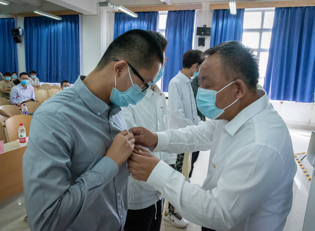Deputy Dean Zhang Jiupeng announced the list of appointments of 2021 undergraduate head teachers. Then, the leaders of the college issued a letter of appointment for the 2021 undergraduate class teachers. At the end of the ceremony, Dean Chen Jianxun and Secretary Wang Hainian wore the school badge for the freshmen representatives and took a group photo with them. After the warm applause, the opening ceremony of the 2021 undergraduates of our college came to a successful conclusion.