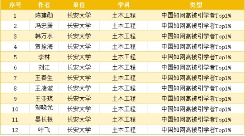 Top 1% Highly Cited Scholars in Civil Engineering