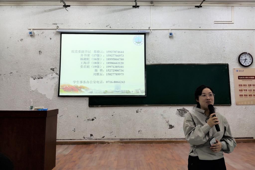 会议临近尾声,苏书记告诉同学们:“安全教育是提高大学生综合素质的重要内容,是维持高校治安稳定的基础。希望同学们能够学以致用,保护自身。祝愿同学们学业有成。”