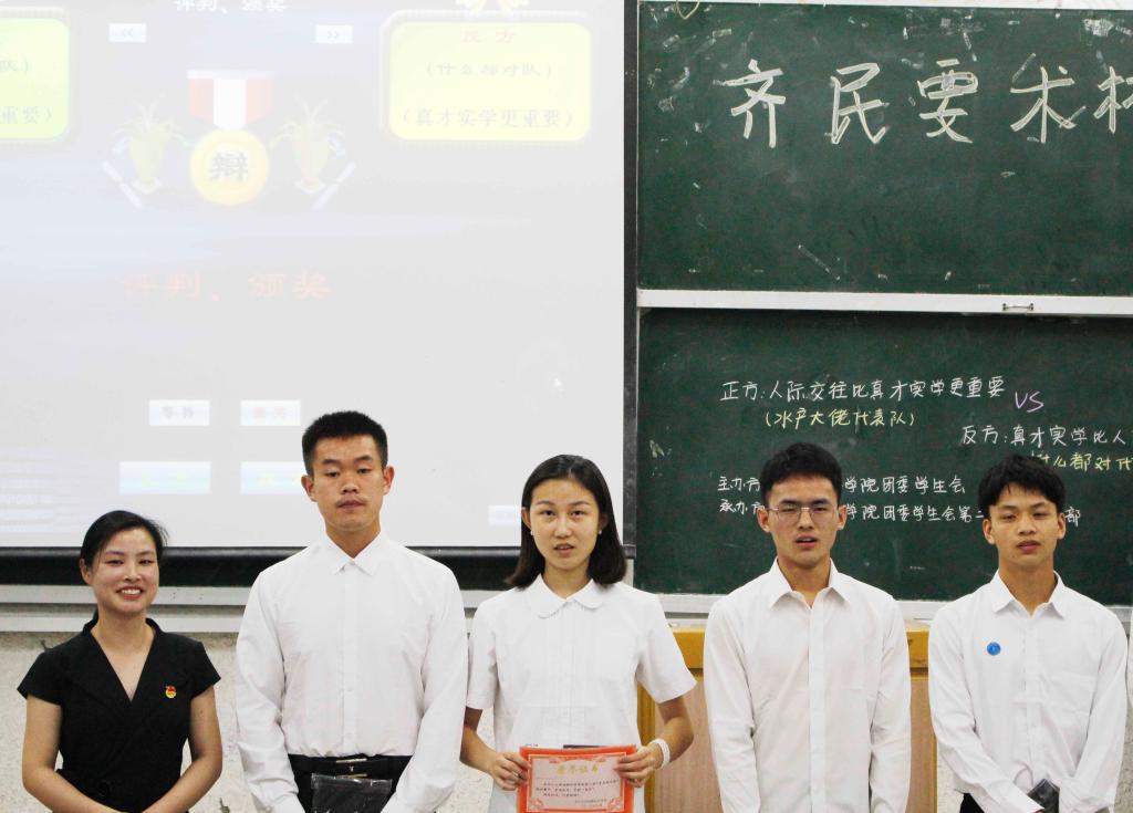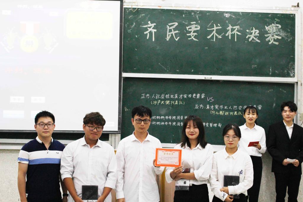 接下来就是激动人心的颁奖环节,首先为优秀辩手颁奖,他们分别是张吉椅、胡珊珊、张莉、吴丽华、尤峰志。最佳辩手为舒玖。然后为幕后辛苦的工作人员颁奖,他们是袁茜、李月华、柯婷婷、何亮、胡挺财、金洋、庄大文。最后颁发前三甲,季军是水产职31801班,亚军是动科31801班,冠军就是水产31801班。