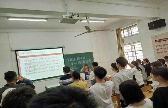 第二项,辅导员吴涵就习近平主席在纪念五四运动100周年大会上的讲话对各个团支书进行问答,讲解习近平主席五四精神讲话的主要内容以及意义。