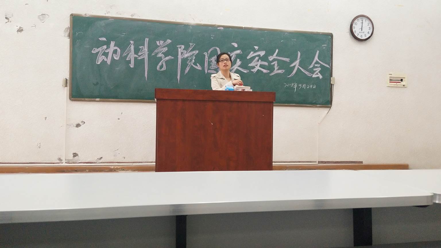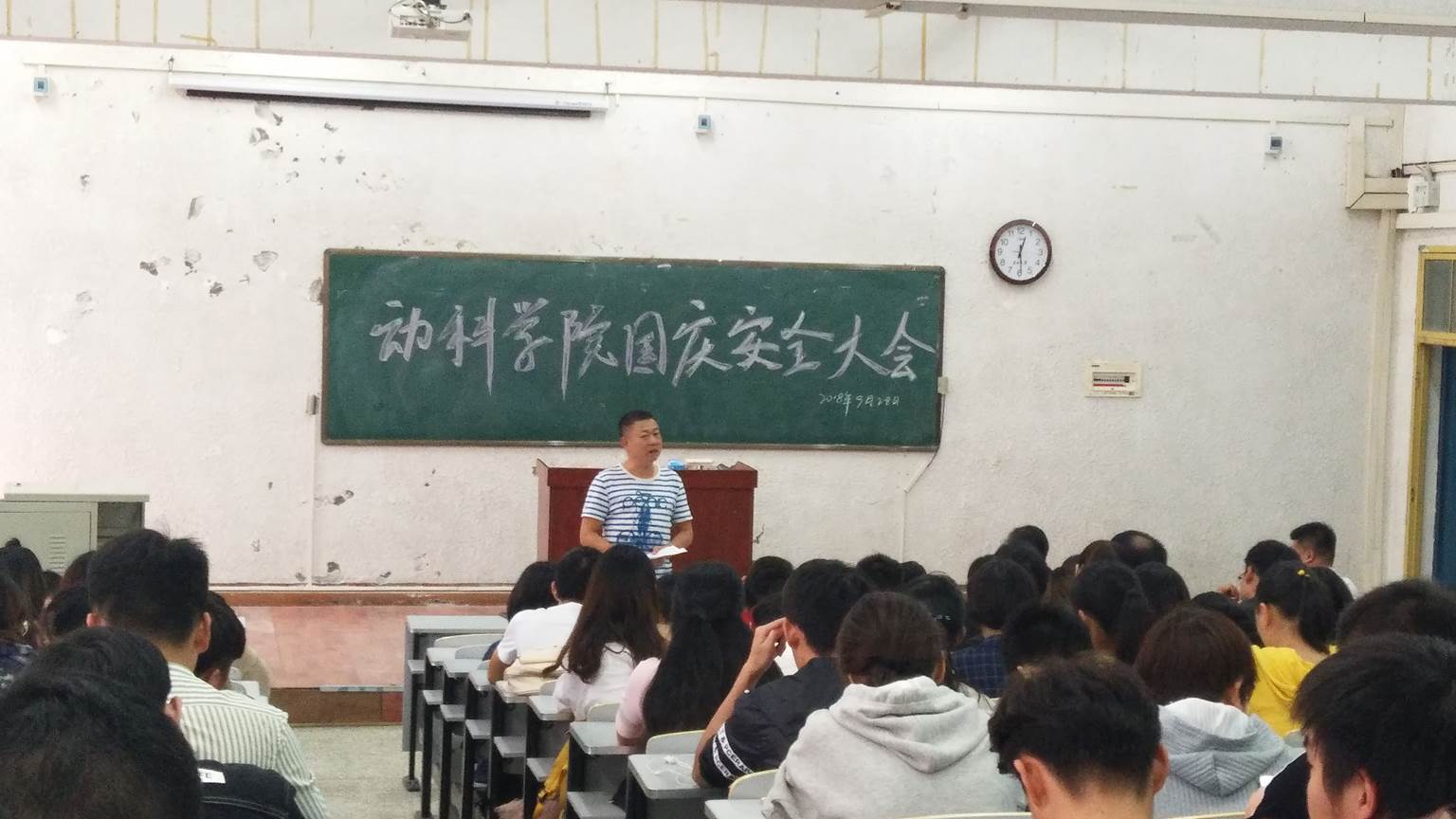 (通讯员 唐钦清)为贯彻落实“十一”长假期间学校对于学生安全教育及管理工作方面的要求,确保万象城官网同学能够提高自我防护意识,度过一个安全愉快的假期。9月28日中午十二时许,动物科学学院安全教育大会于西校区五教203成功举办,党委副书记王雨、动物科学学院团委书记杨湘虹出席本次大会,16级全体学生参加此次会议。