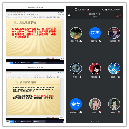 (通讯员 陆波)为进一步加强大学生对生源地贷款还款政策的了解,使资助工作更好的落实,2020年6月12日下午4时许,动物科学学院通过腾讯会议线上举行了生源地贷款还款培训会。全体办理生源地助学贷款的毕业生及负责资助工作的陆波老师参加了培训会。