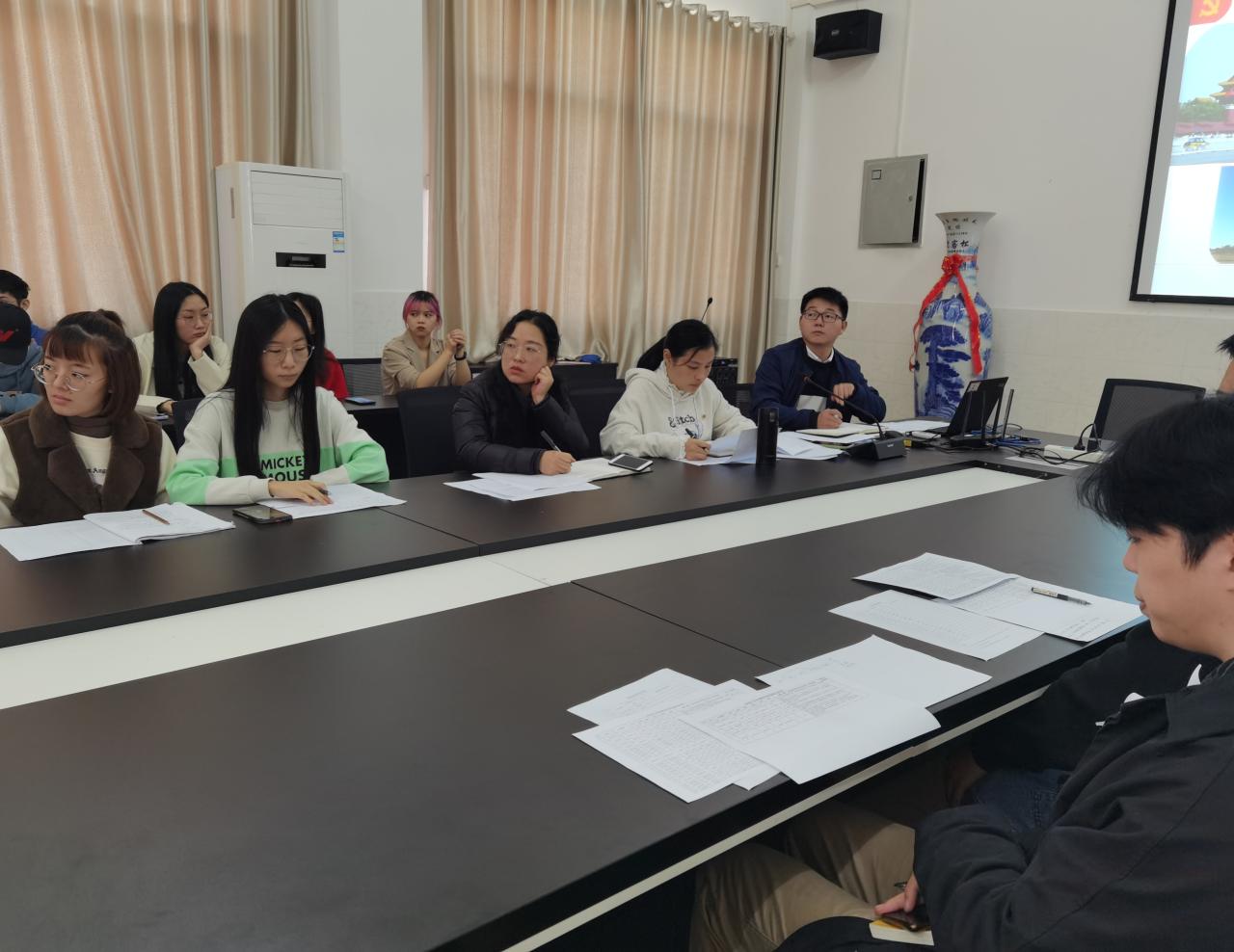 会议由党委副书记苏晓云主持,参会人员有:团委书记杨湘虹、研究生支部书记刘晶、辅导员王海洋、研究生及本科生正式党员、预备党员。会议开始,苏书记首先简单介绍了会议的基本流程,分为四个部分:研究生预备党员发展对象汇报对党的认识及思想等方面的情况、研究生党支部正式党员投票、本科生预备党员发展对象汇报对党的认识及思想学习等方面的情况、本科生党支部正式党员投票。