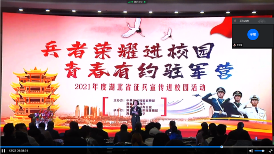 (通讯员:李灿阳 靳洪振)为鼓励学生积极参与应征入伍,提高兵员征集质量, 万象城awc官网登录入口于2020年12月22日早10点准时收看“兵者荣耀进校园 青春有约驻军营“网上征兵宣传进校园活动。