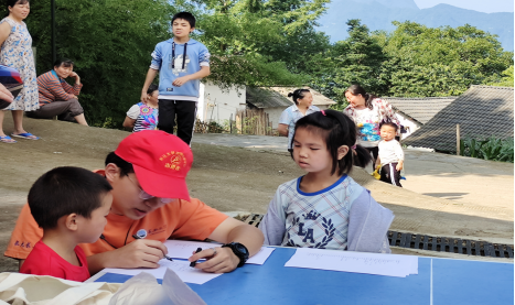 7月13日和14日,实践队队员们以当地的青少年儿童为对象,在郑家埫村村委会中心为青少年儿童进行了身体素质测试、体育锻炼问卷调查及体育锻炼知识宣传等活动,这些活动旨在全面了解该农村地区青少年身体健康状况和体育锻炼等基本情况,并向农村青少年传输体育锻炼知识和生活知识。