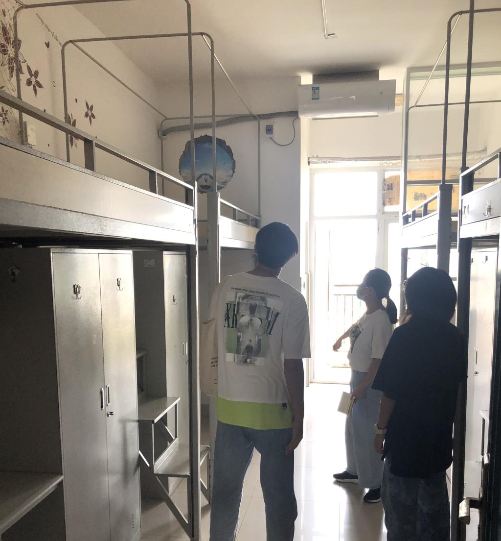 为做好疫情常态化防控工作,确保新生安全住宿,拥有良好舒心的住宿环境,杨湘虹老师要求各小班仔细检查宿舍每个角落,尤其注重寝室卫生、床铺是否牢固、电源是否安全、门窗是否完好,做好问题记录,要做到全方位保障。