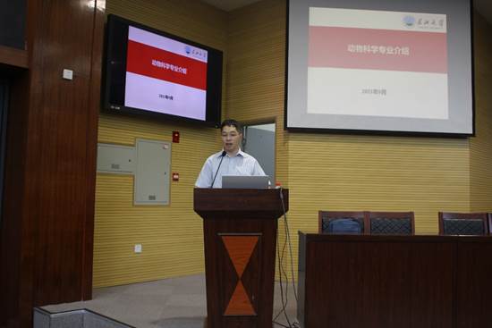 黄廷华老师身为动科系的教授,则从动物科学专业的历史沿革开始,引出动科悠久的发展演变过程,着重讲解了动科的专业使命、师资力量、学科建设、科研项目和科研团队,并通过往届动科系学子的优异成绩,针对同学们所关心的就业问题,对当今的就业形势进行了深度剖析。黄教授为了让同学们今后更好的掌握专业知识,站在学生的角度,专门制作了一份详细的学习规划,指引同学们前进的方向。