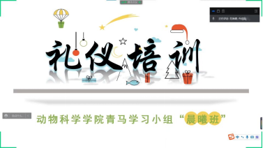 (通讯员:范海璐 刘雨双)不学礼,无以立。1月12日晚7时,动物科学学院第二期青马学习小组在线上开展公关礼仪培训,本期学生辅导员范海璐及全体学员参与本次活动。