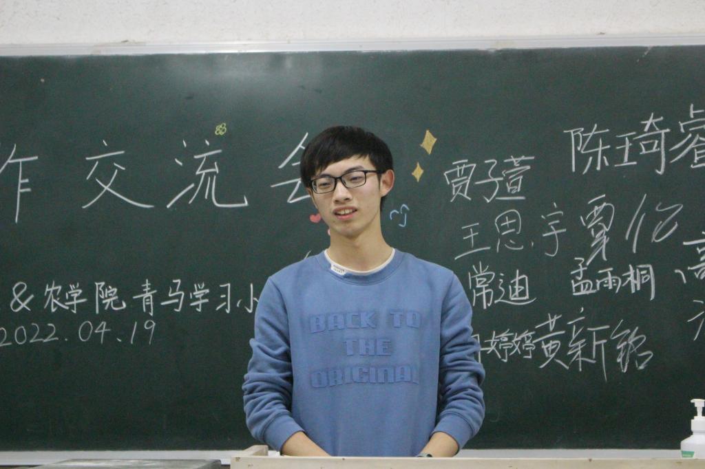 在自我介绍时,动科院刘雨双表示,很荣幸和农学院的战友们欢聚在此,每个人都有独特的闪光点,希望大家能相互认识、共同进步。农学院陈琦睿说道:“三人行,必有我师焉。我们两院要持续彼此学习,凝聚青马战友情。”