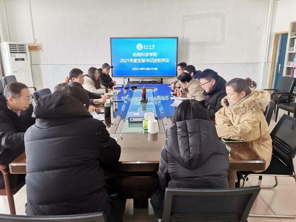 动物医学系党支部书记姚敏、动物科学系党支部书记杜晋平、水产养殖系党支部书记胡伟、研究生党支部书记杨湘红、本科生党支部书记王海洋依次述职,从各支部落实“三会一课”制度、开展党史学习教育、参与疫情防控下沉社区、发挥党员教师在教学、科研工作中的带头作用以及学生党员发展、入党积极分子培训等方面,汇报了各支部的情况,同时也分析了支部工作中存在的不足,明确了今后努力的方向。