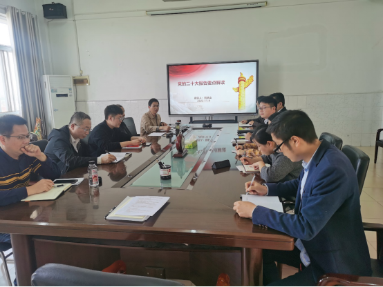 在集中学习阶段,熊新山以“党的二十大报告要点解读”为题,用PPT形式为大家领学了习近平总书记在中国共产党第二十次全国代表大会上的报告;王海洋老师领学了《中国共产党章程》(修正案);杨湘虹老师领学“十九届中央纪律检查委员会工作报告”;宋宇航老师领学“习近平总书记在党的二十大闭幕会上的重要讲话精神”,姚敏老师领学“中共中央关于认真学习宣传贯彻党的二十大精神的决定”等内容。